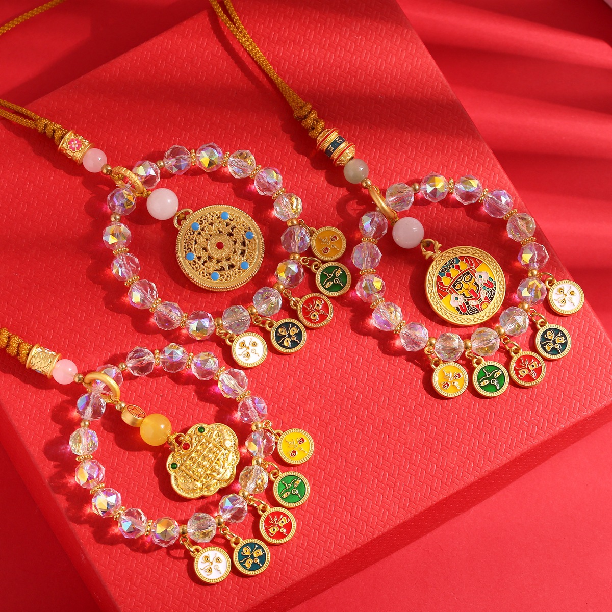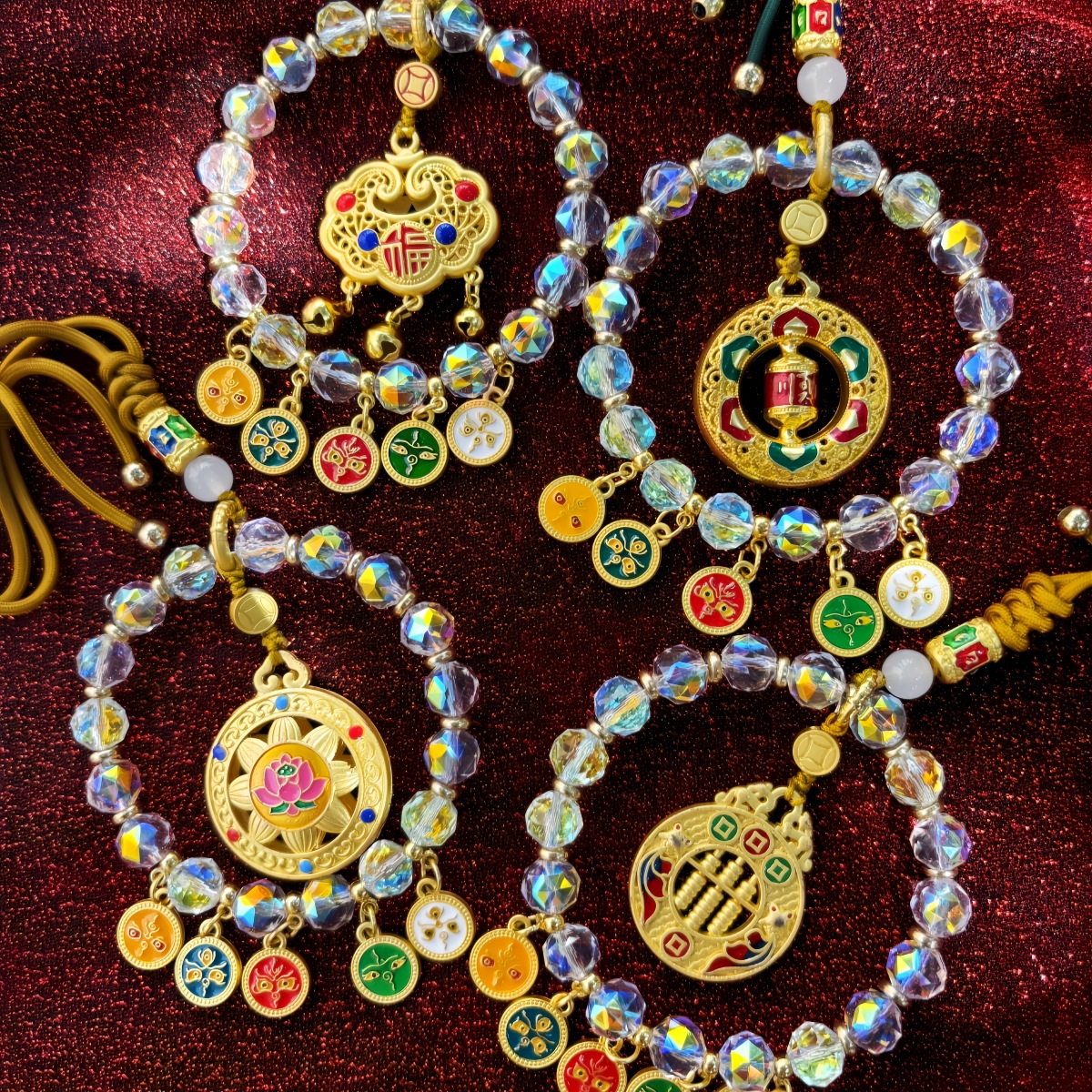 杭州霊隠五路財神そろばん車掛円満平安納福自動車内装水晶数珠車内掛飾り