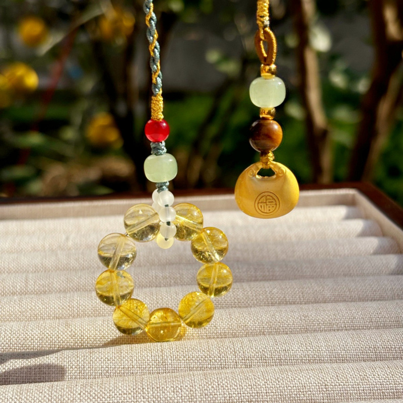 お寺の同じタイプの美しい未来の天然の黄水晶の包みのペンダントの自動車のペンダントの国風は財福のお金の袋の文を出して装飾を作ります。