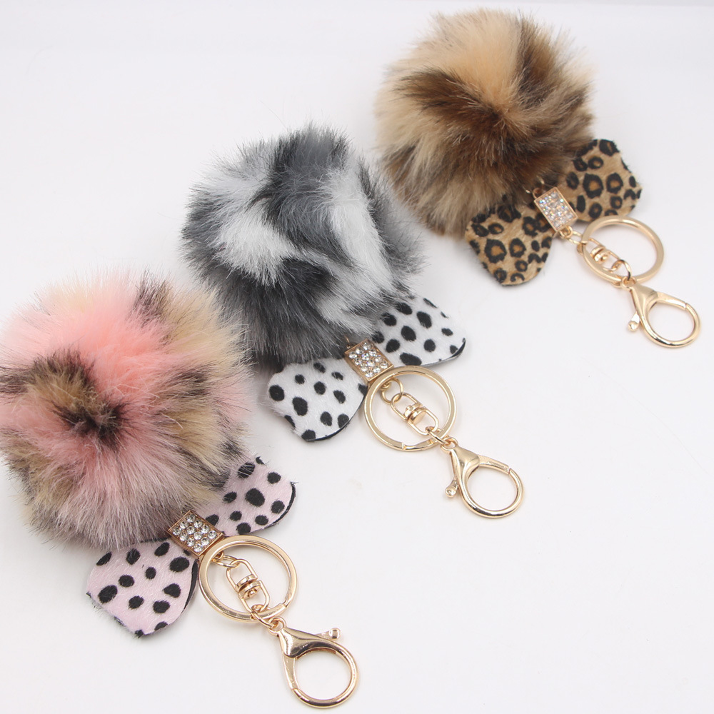 クロスボーダーの人気ヒョウ柄の蝶結びの毛玉バッグとストラップのキーホルダーの女性の気質のヒョウ柄の財布がぶら下がっています。