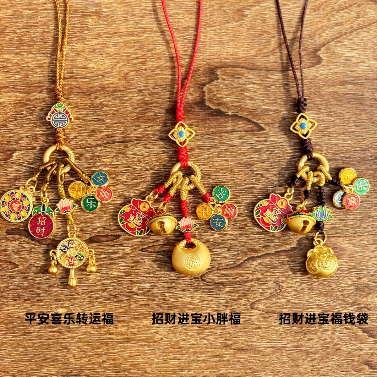 招財国潮新年赤いストラップ車の鍵ストラップ車のキーホルダー六字真言平安福は財布を飾る