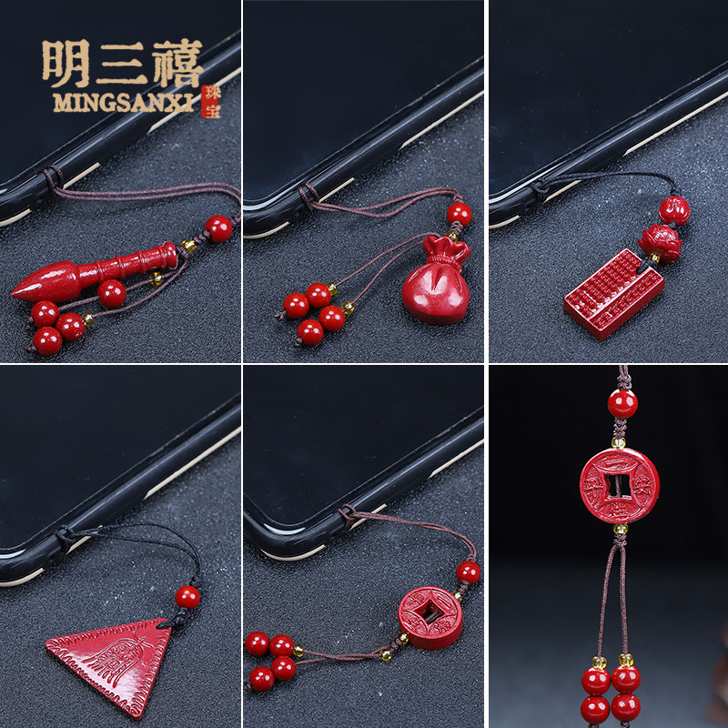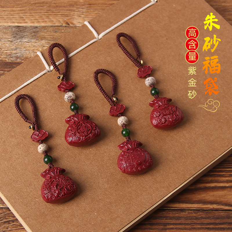 朱事大吉ストラップ高含有量朱砂銭袋携帯ストラップ福袋ストラップ手作りひもビーズひも