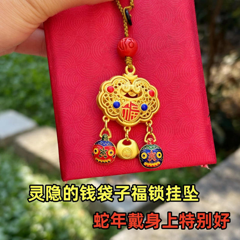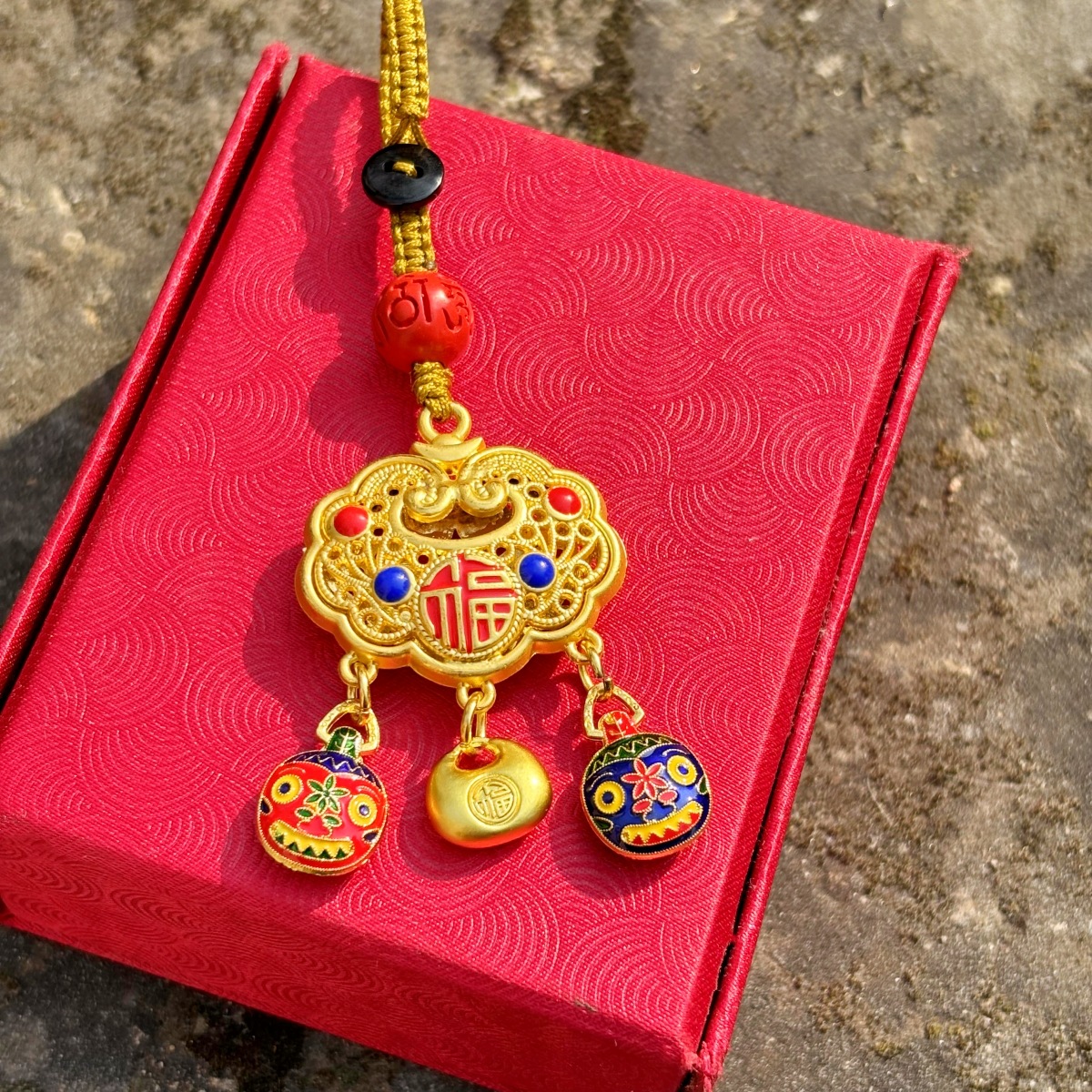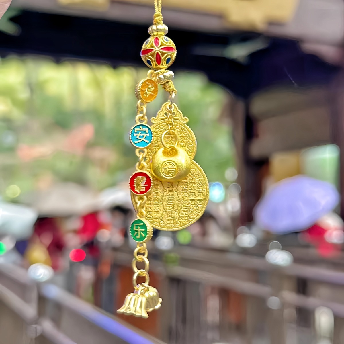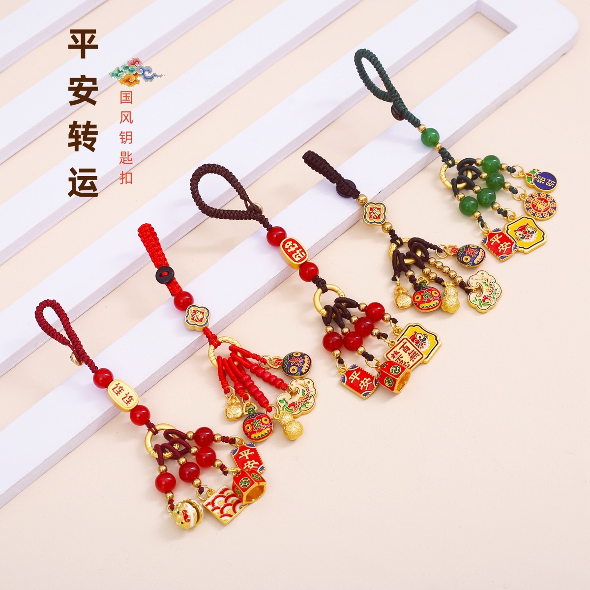平和と願いの干支年ゴールデンカラーキーバッグストラップ中国風携帯電話チェーンペンダントマネーバッグ携帯電話ペンダント