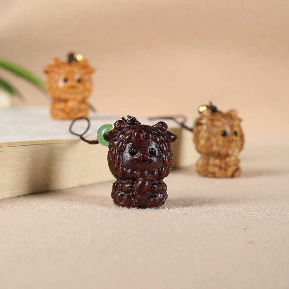 緑檀紫檀木彫りかわいいアニメ美羊羊ストラップのキーホルダー