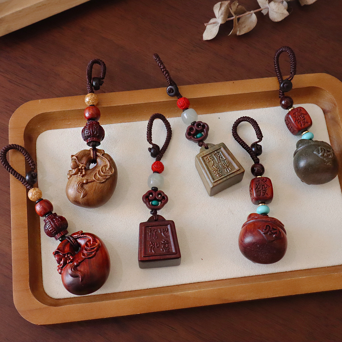 菩提の銭袋の自動車のキーは精巧なペンダントのアクセサリの桃木の携帯電話の蓮の蓬のペンダントの男女の携帯電話のチェーンを掛けて飾ります。
