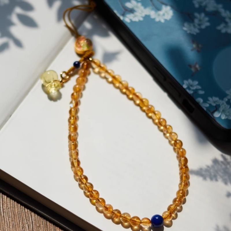 女性の黄色の水晶の携帯電話のチェーンの小さい大衆の携帯電話のひもの黄色の水晶のお金の袋のペンダントは民族の風を飾ります。