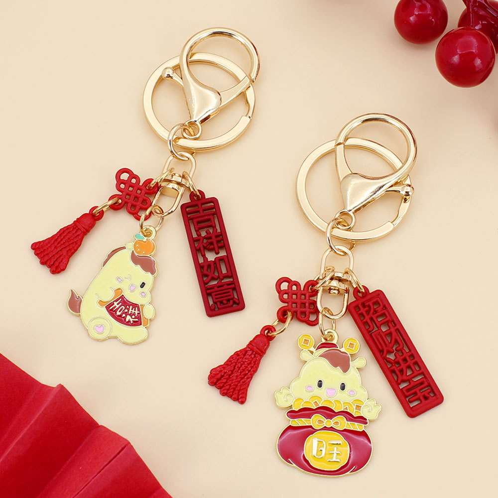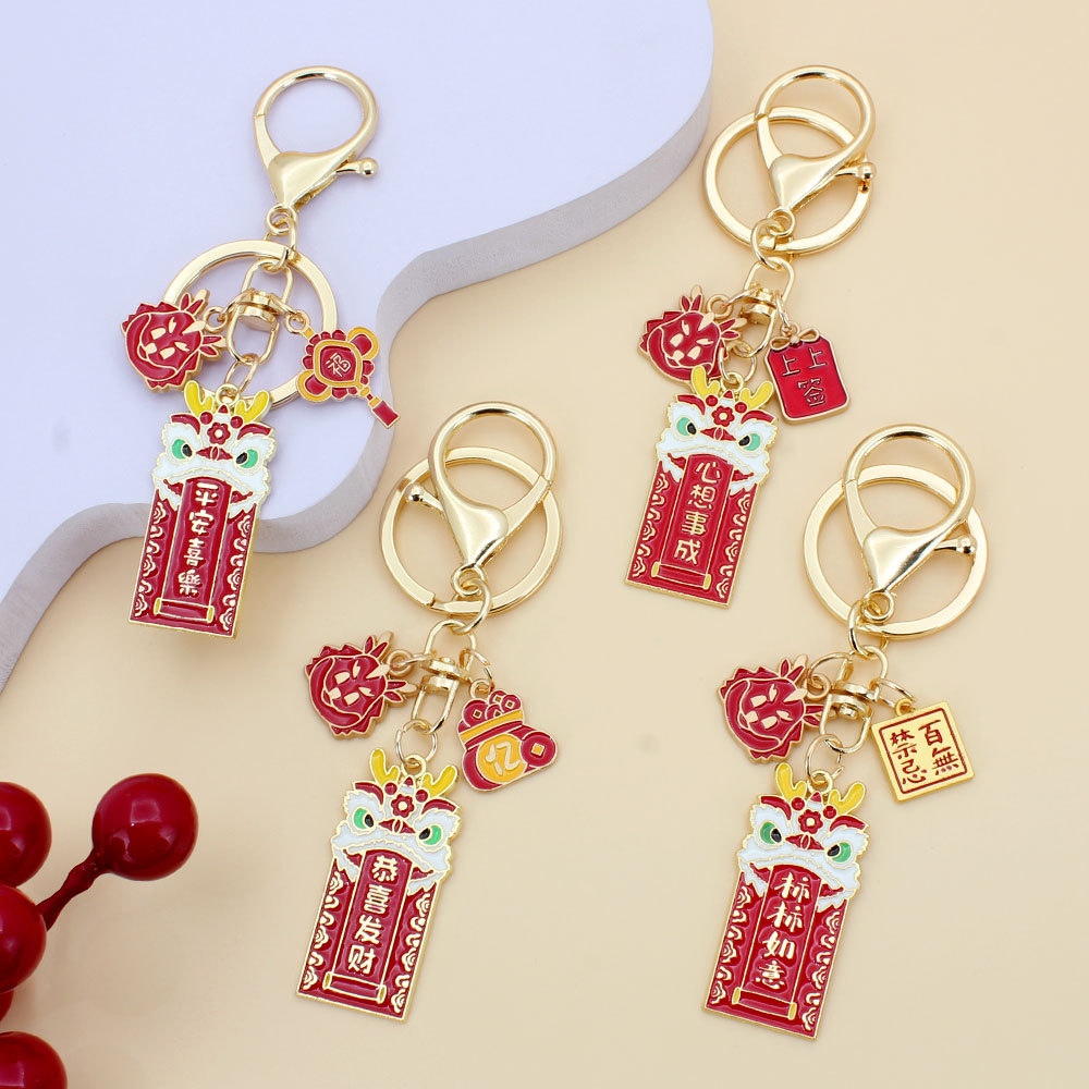 ライオン覚醒、幸あれ、男性と女性のための金属製キーホルダー、中国風のお祝いキーホルダー、ホリデーイベントの小さなギフト