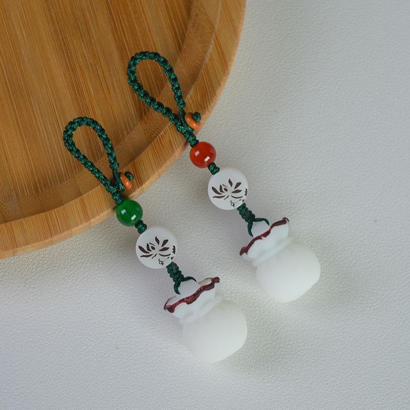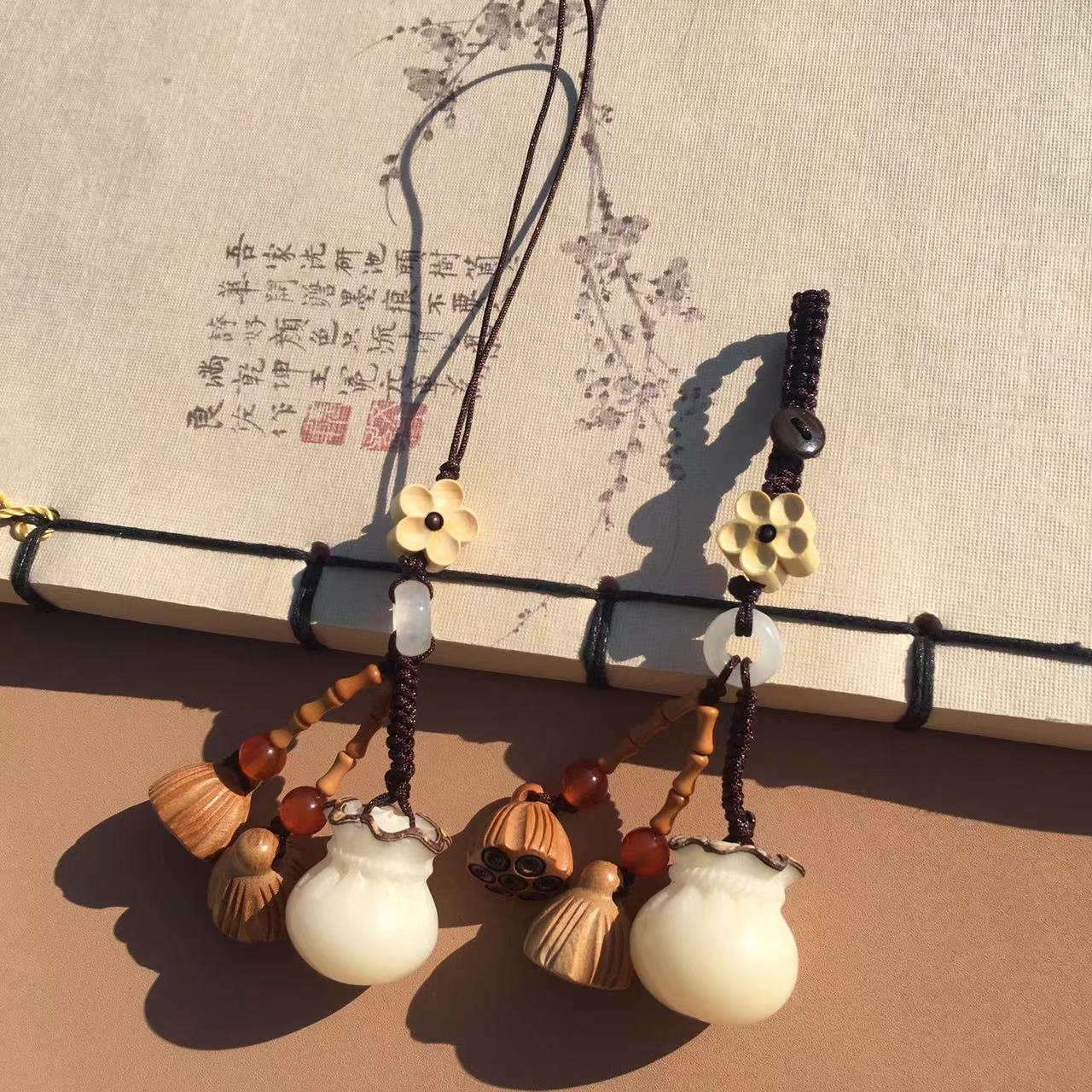 白玉菩提子雕刻莲花钱袋手机坠桃木莲蓬钥匙扣挂件男女礼品