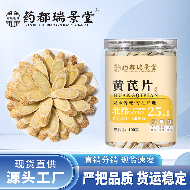 薬都瑞景堂黄耆片(無硫黄燻製、丸ごと切り、甘粛省産、水浸し用、卸売、配送可、100g/缶、北芪)