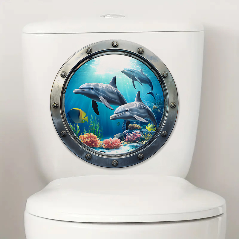新しい水中世界イルカステッカー浴室トイレ便座ステッカー家の装飾自己粘着卸売クロスボーダー