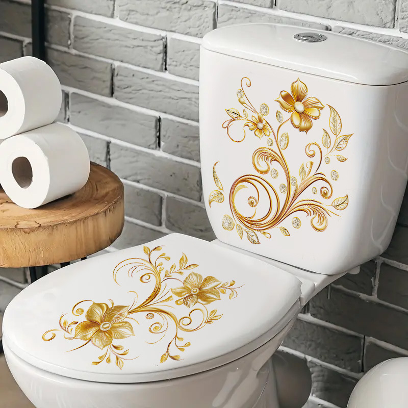 新しいDumei模擬ゴールデンローズバスルームトイレ防水便座トイレステッカー自己粘着ステッカーホームインテリア