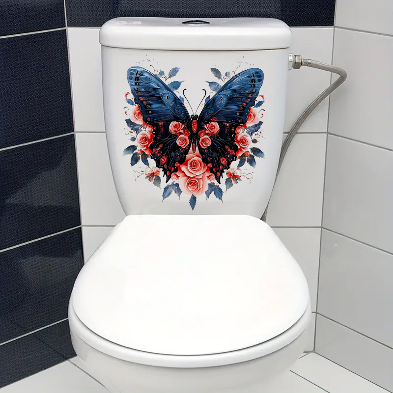 バレンタインデー愛ローズ蝶花装飾トイレステッカー浴室トイレ粘着紙卸売クロスボーダー