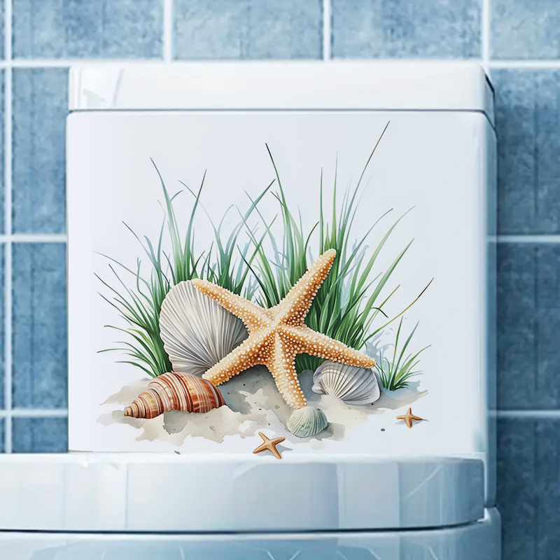 新しい漫画海洋生物ヒトデシェルトイレステッカー浴室浴槽美化装飾壁ステッカー自己粘着
