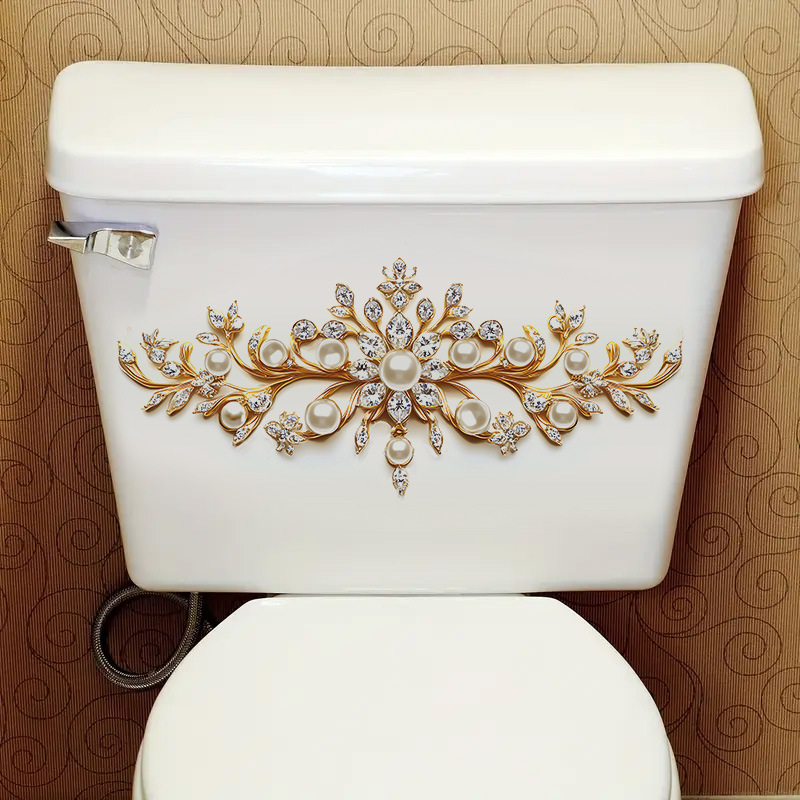新しいゴールデンパターンダイヤモンドフラワーバスルームトイレトイレ装飾ステッカーウォールステッカー自己粘着取り外し可能な粘着剤