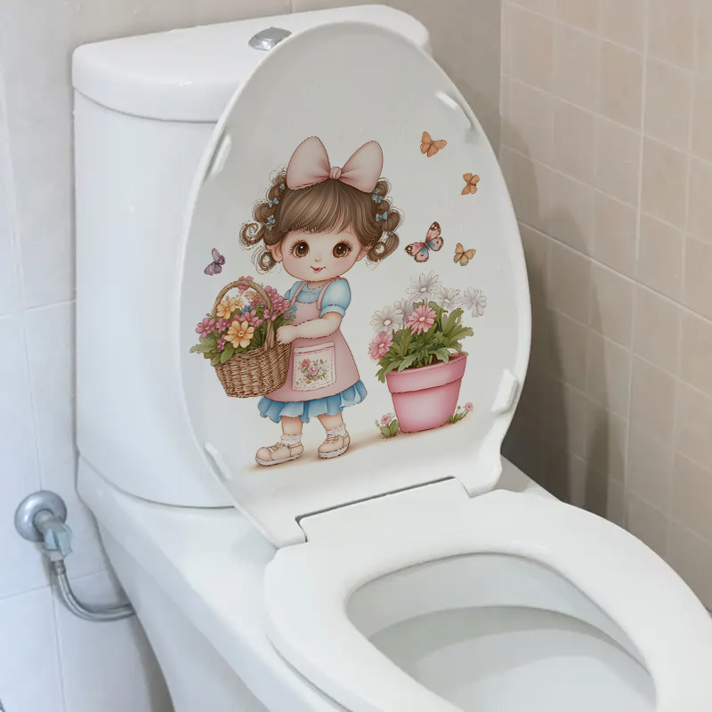 新しいガーリーハートフラワーディスペンサーリトルピンクガールバタフライトイレステッカー浴室寝室バルコニー家の装飾ステッカー