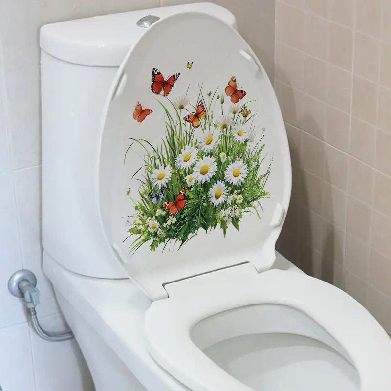 春の花と緑の花と蝶の塗装ウォールステッカー浴室トイレ壁トイレ粘着ステッカー