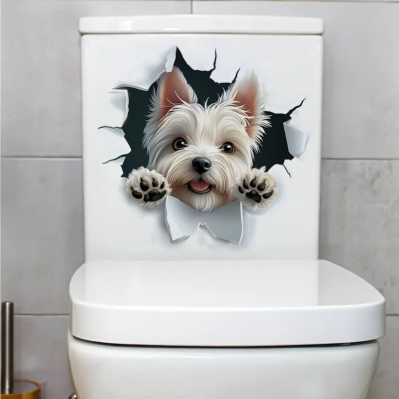 3D 立体子犬壁トイレステッカー浴室浴室寝室トイレステッカーカバートイレステッカー壁ステッカー自己粘着