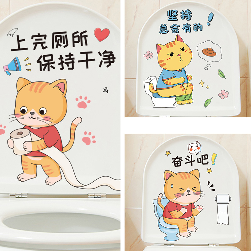 インターネット有名人面白いトイレステッカー防水装飾便座ステッカーかわいい漫画猫犬壁ステッカー浴室