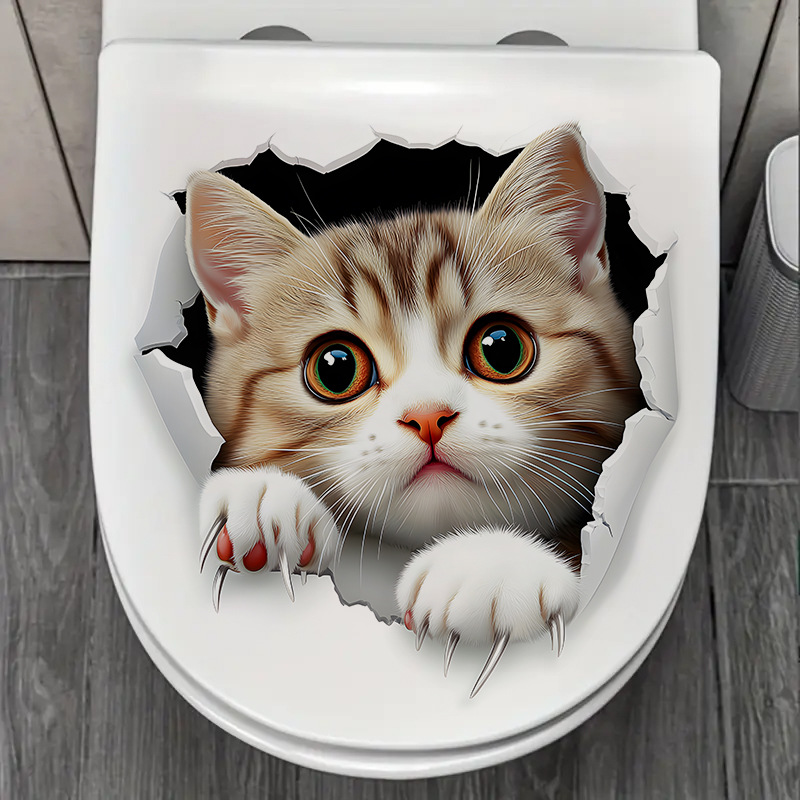 新しいパーソナライズされた漫画 3D かわいい子猫トイレステッカー pvc 浴室ステッカー家の装飾美化卸売することができます