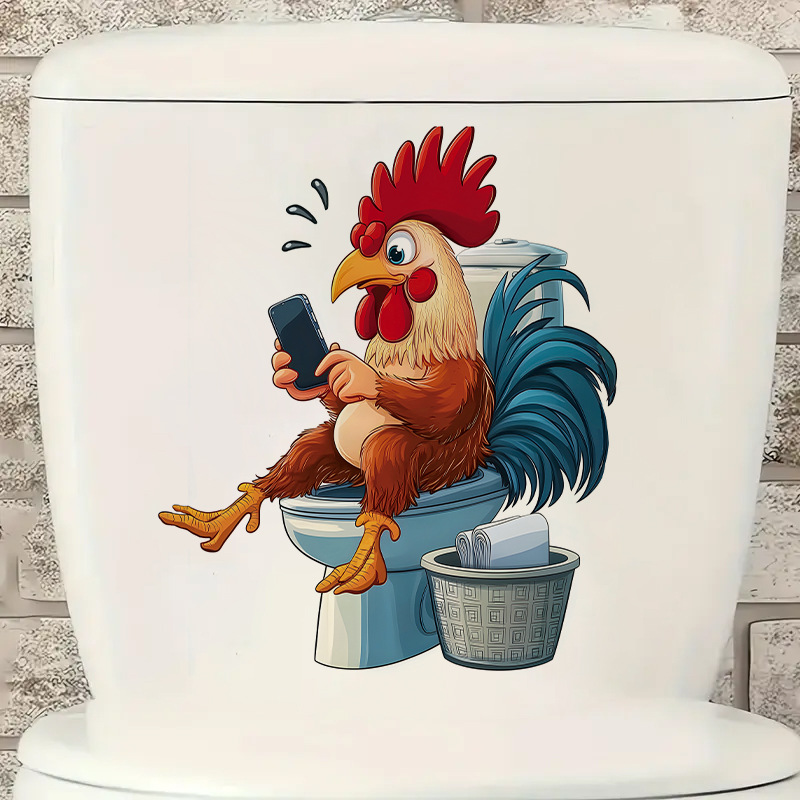 漫画の大きなオンドリが携帯電話を読むトイレステッカー pvc 浴室トイレ家の装飾壁ステッカー自己粘着卸売