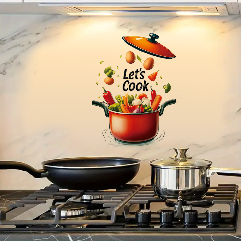 新しい英語レッツクック食材電気中華鍋キッチンレストラン家の装飾ステッカー自己粘着卸売