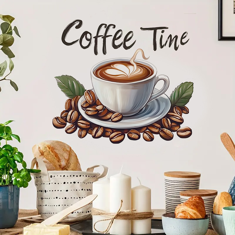 新しい漫画コーヒー豆コーヒーカップ装飾美化ステッカールームリビングルームカフェ壁装飾自己粘着