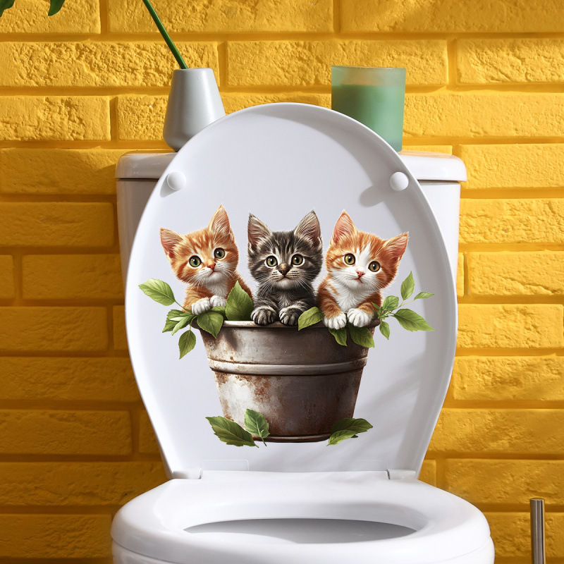 新しい 3 つのかわいい子猫浴室トイレ防水便座トイレステッカー自己粘着ステッカー