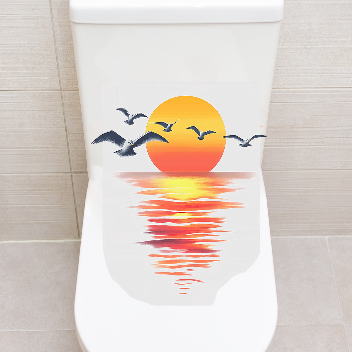 新しいクリエイティブな夕日の海の遠景バスルームトイレ防水便座トイレステッカー自己粘着