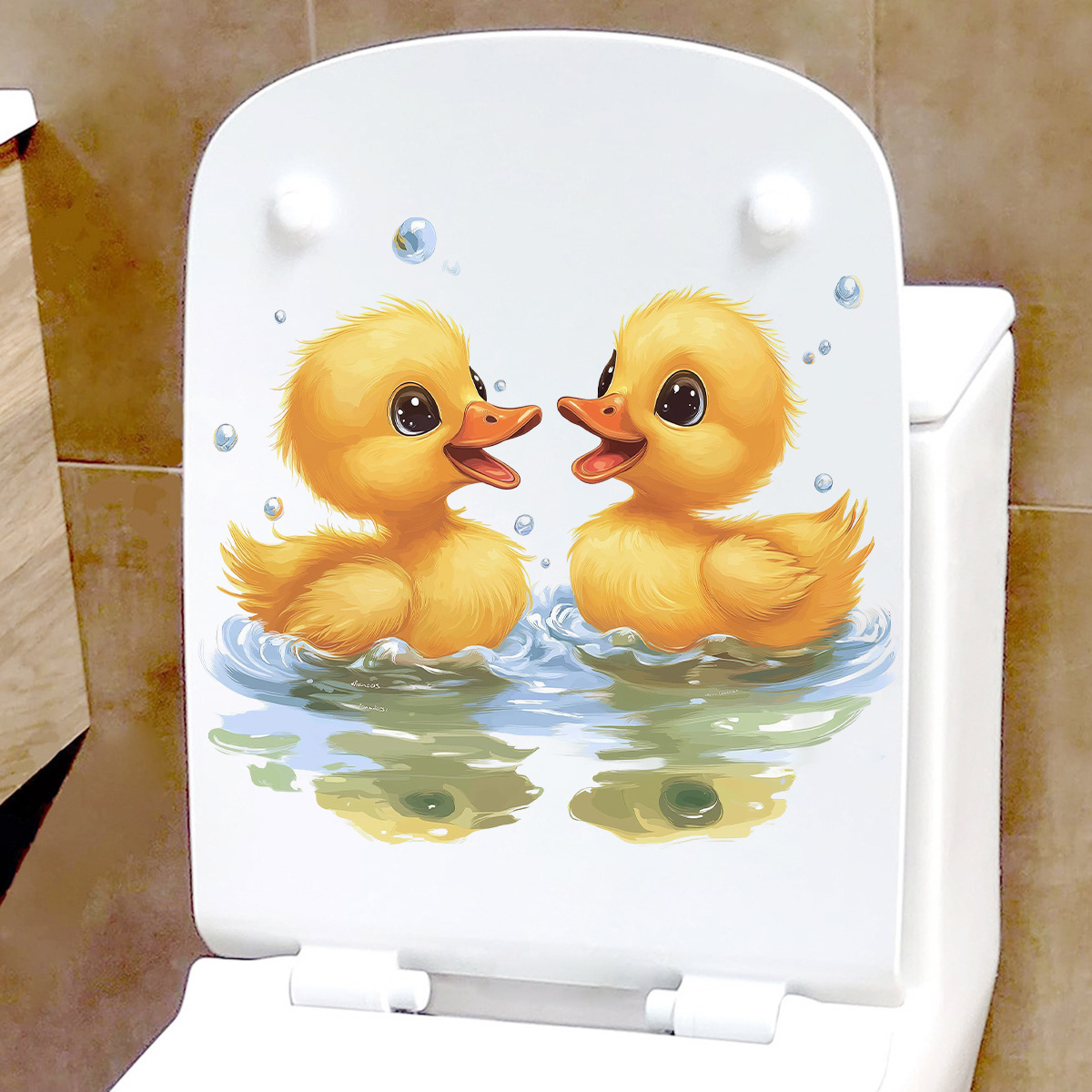 新しい漫画の小さな黄色いアヒルが水で遊んでいる浴室トイレ防水便座トイレステッカー自己粘着ステッカー
