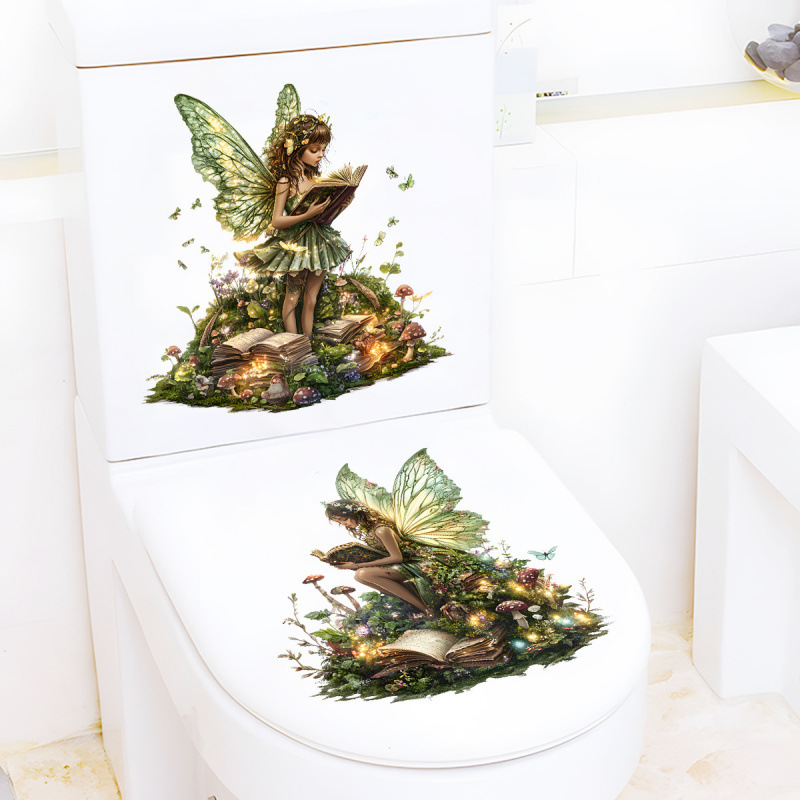 緑の蝶の女の子が本を読んでいるトイレステッカー浴室トイレ装飾ステッカー浴室トイレ装飾ステッカー