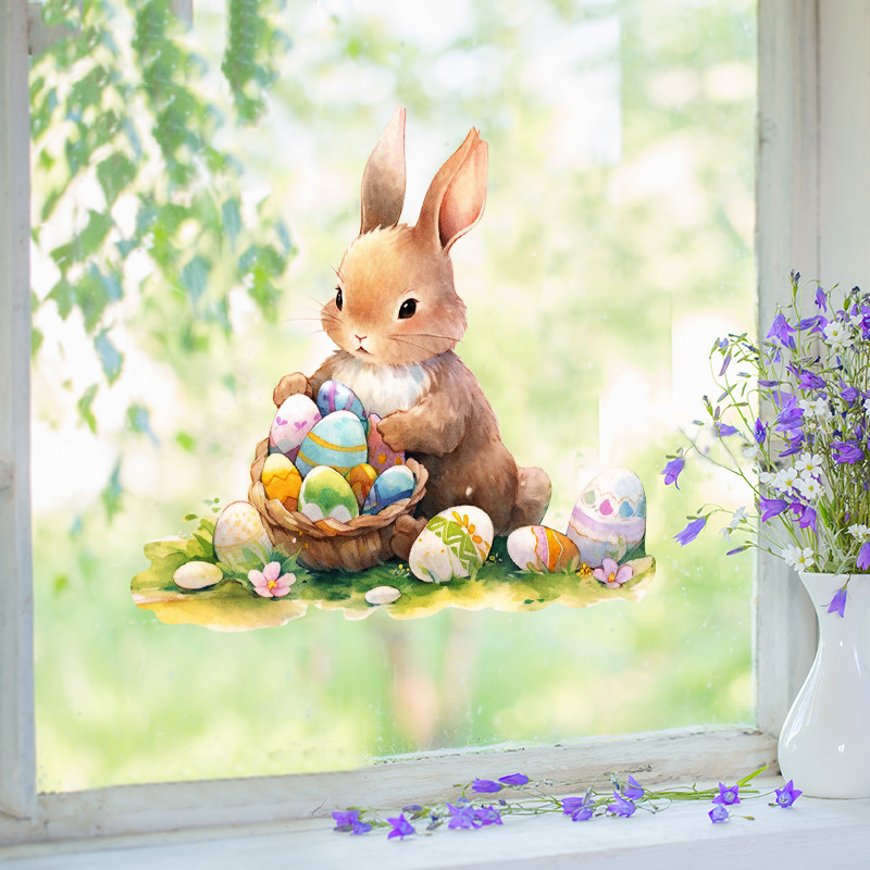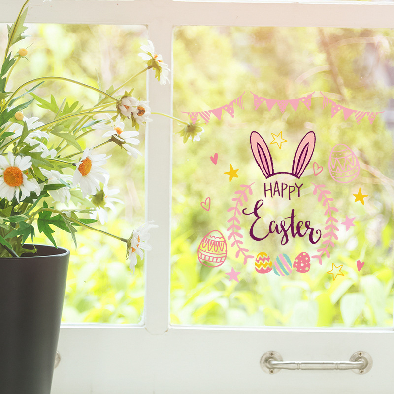 イースターエッグウサギステッカーショッピングモールショップガラス窓背景壁カラー装飾トイレステッカー