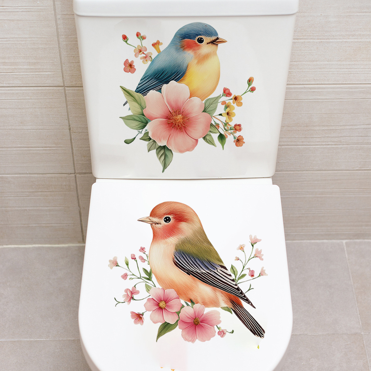 新しい漫画の鳥と花のバスルームトイレ防水便座トイレステッカー自己粘着ステッカー