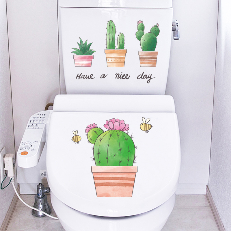 メーカー卸売サボテン緑植物インスタイルバスルーム浴室自己粘着装飾絵画トイレ防水ステッカー AS3311