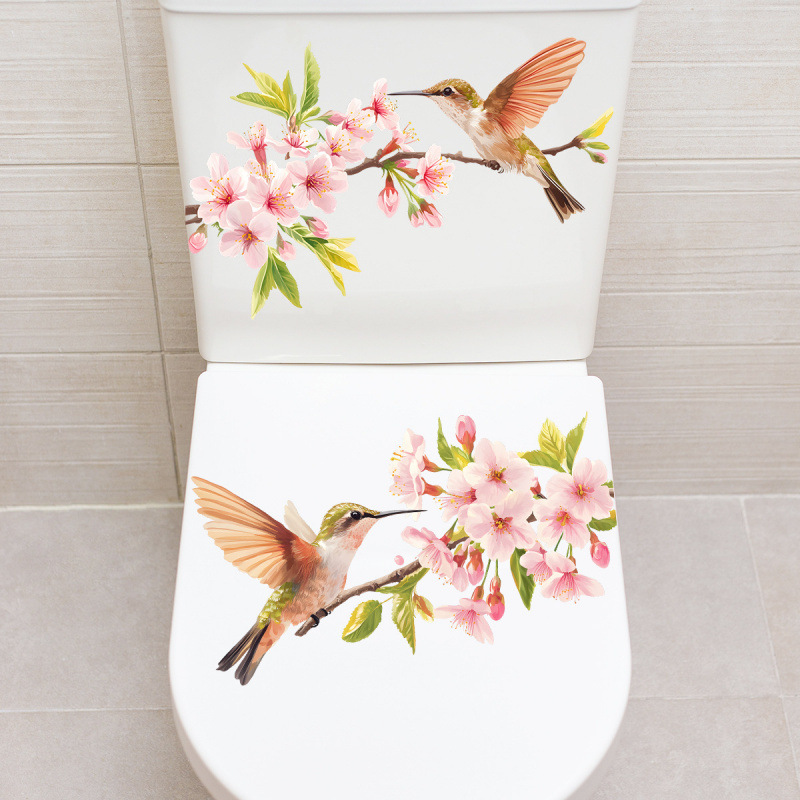 模擬塗装ハチドリ花収穫トイレステッカー浴室トイレ装飾ステッカー模擬動物壁ステッカートイレステッカー
