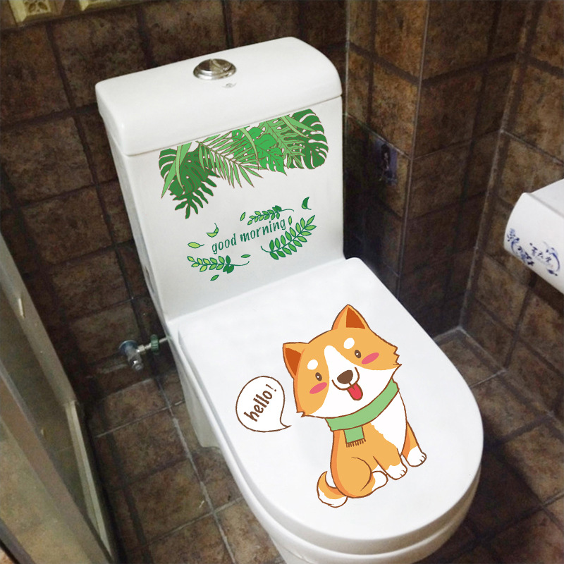 メーカー卸売笑顔犬漫画トイレ装飾ステッカー浴室トイレ北欧スタイル防水ステッカー AS3310
