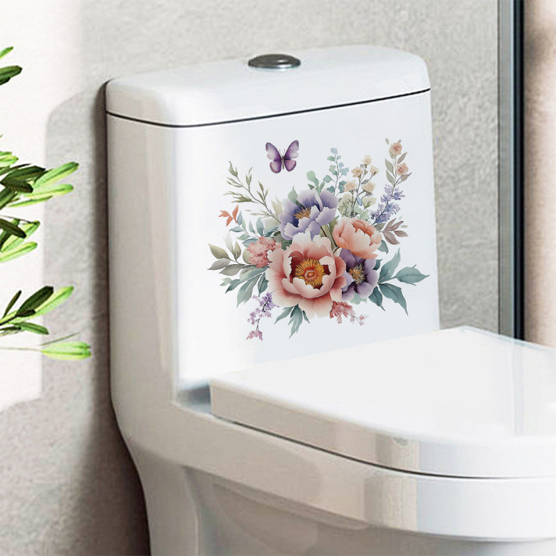 ローズバタフライ便座装飾ステッカー浴室ガラス窓取り外し可能な防水デカールクロスボーダーホット販売ステッカー