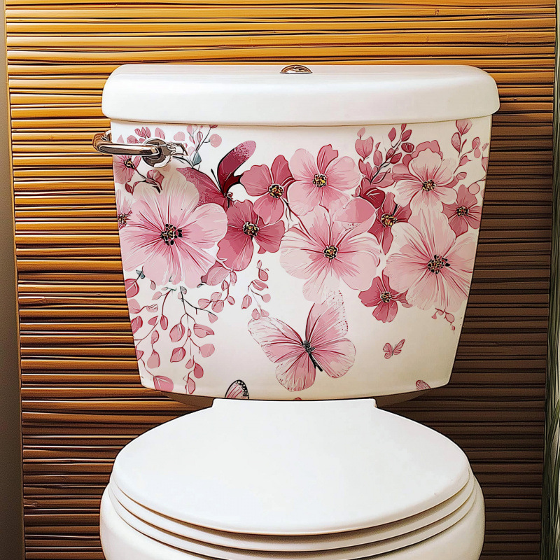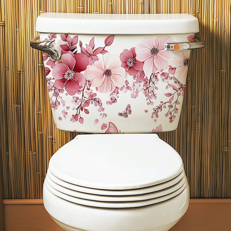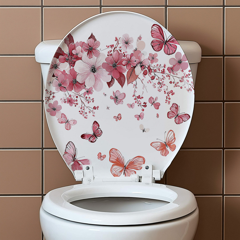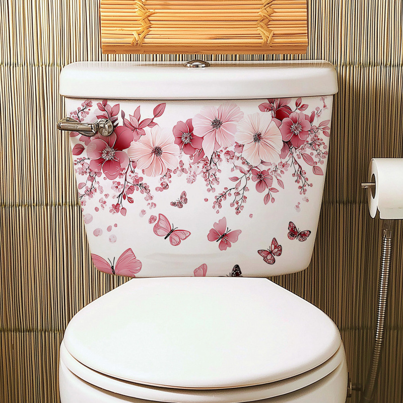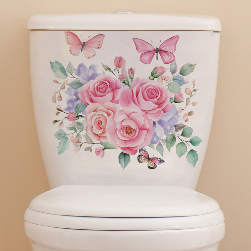 MS4383-ZCの新しいピンクの植物の花の蝶の便器は浴室のトイレの装飾の壁を貼って自分でくっつきます。