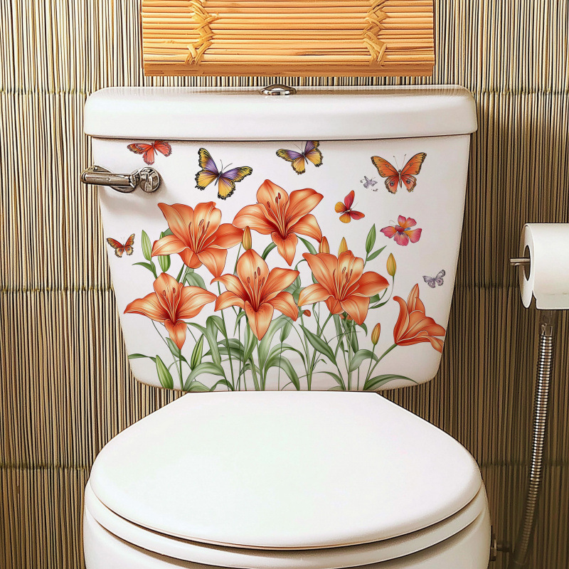 MS356植物の花の蝶の壁のステッカーの便器は背景の壁のトイレの装飾の壁を貼って自ら壁を貼ります。