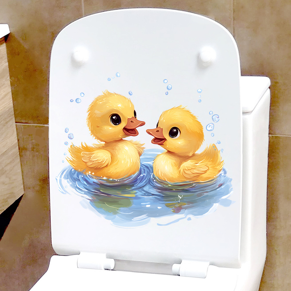 新型AD34132漫画小黄鴨水遊び浴室トイレ防水便器蓋便器には自己接着シールが貼られています。