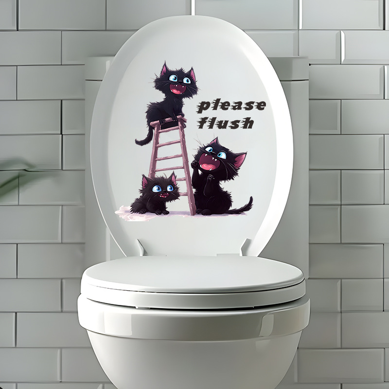 新型AD34109アニメ英語子猫浴室トイレ防水トイレ蓋便器に自己接着シールを貼る