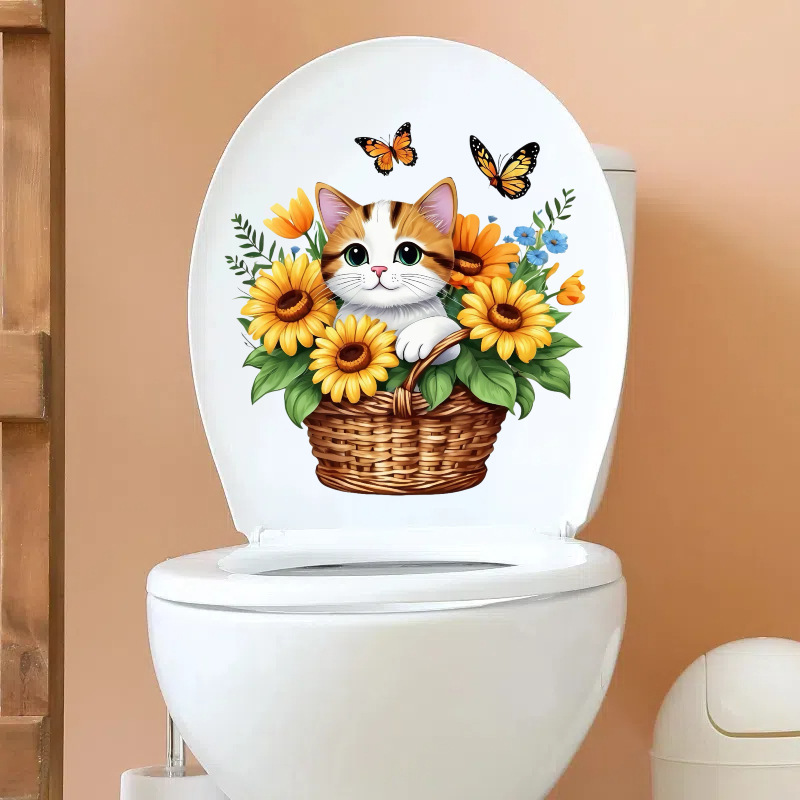 TEMU越境猫蝶花籠便器に壁を貼ってトイレの便器の蓋を貼って、自分で防水便器を貼ります。