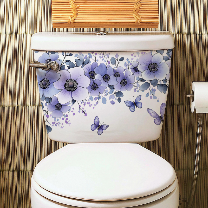 MS3100紫色水彩花蝶植物シールトイレトイレ装飾自己接着シール