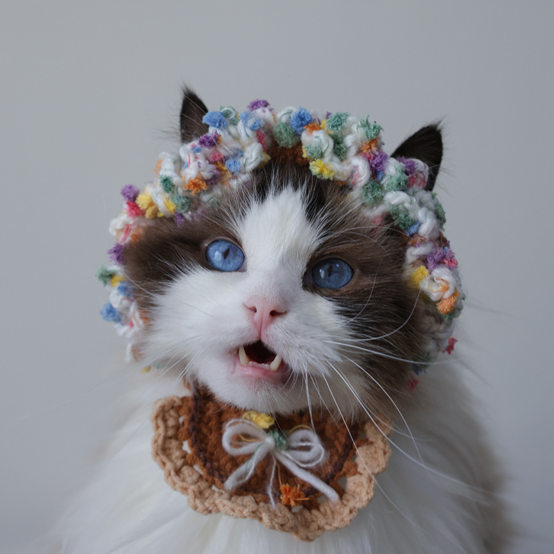 国境を越えたアマゾン2025春の新しいペット帽子ニット猫の頭カバー犬のかわいい頭飾りがポケットを囲んでいる