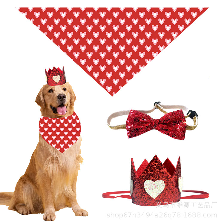 国境を越えた新しいバレンタインデーのペットの服装セット犬の愛の王冠の帽子の唾液タオルのマフラーの三角の服装