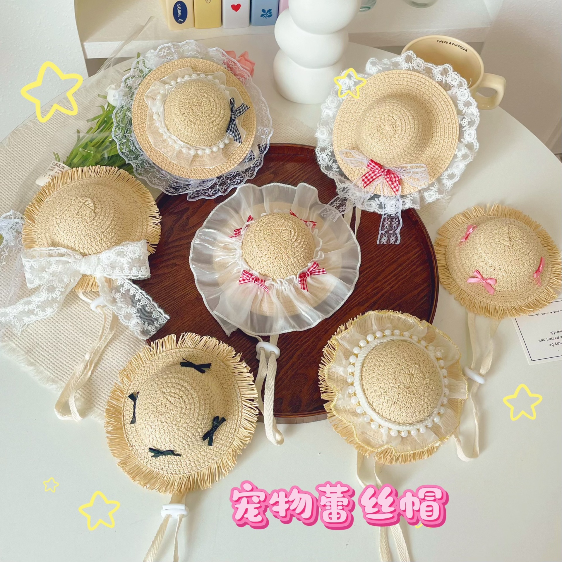 工場の新しい麦わら帽子猫と犬のレースの帽子小さなペットの夏の日よけ帽子屋外日焼け止め日よけ帽子卸売