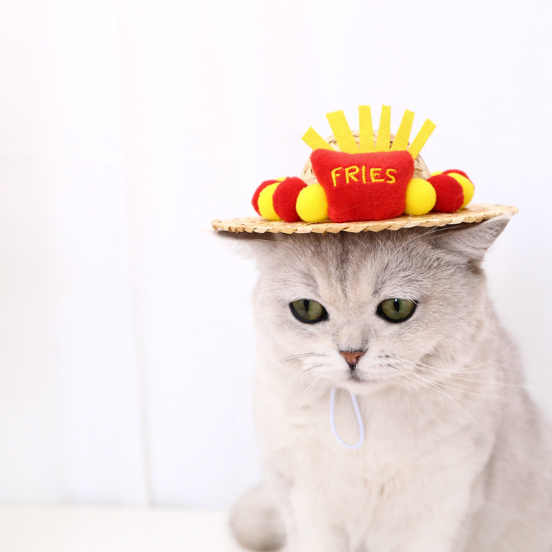 ペットの猫と犬竹トンボ漫画フルーツ麦わら帽子パイナップルイチゴニンジン飛行機サンシェード帽子アクセサリー