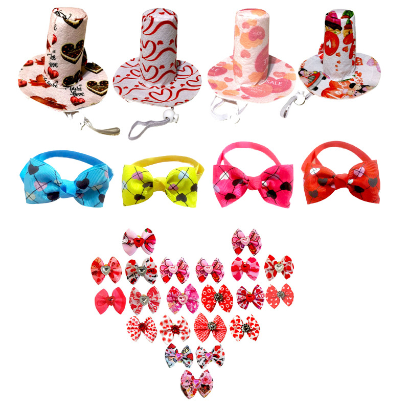 新品バレンタインペット帽子猫犬蝶ネクタイペットティアラセットホワイトデーペット用