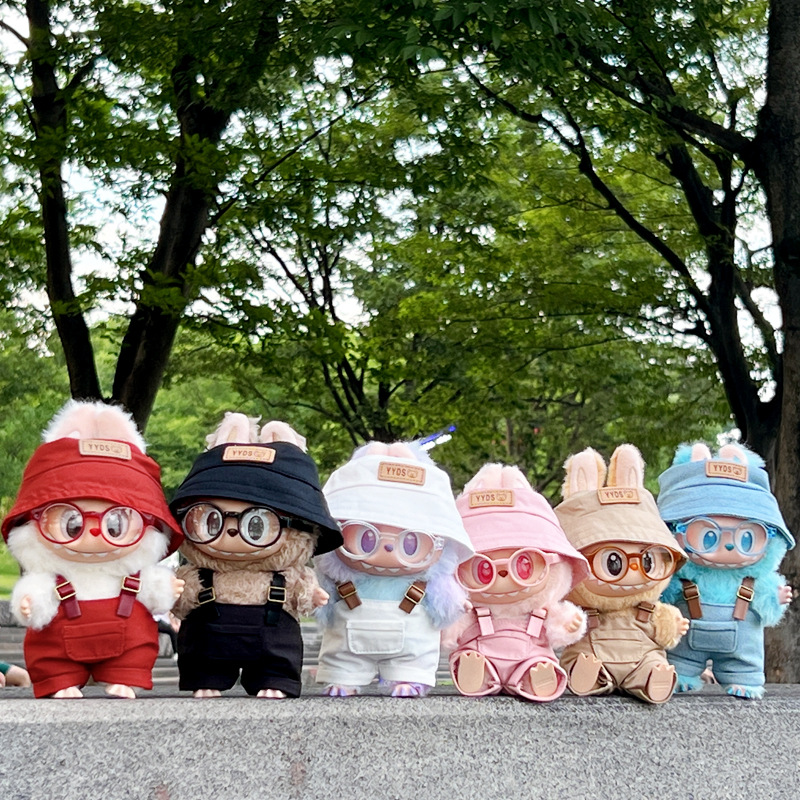 ラブブベビー服 1、2、3 世代ラブブ服オーバーオール帽子スーツ座りパーティー着用ビニール人形