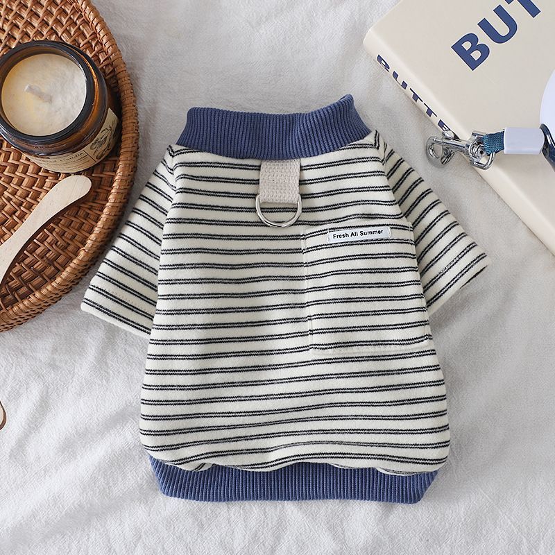 春夏のアウターウェア、牽引可能なペット服、爽やかなストライプシャツ、シンプルで通気性のある猫と犬のラウンドネックスウェットシャツ、二本足の服
