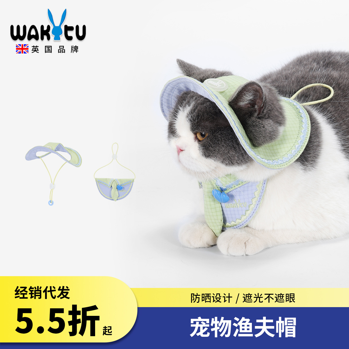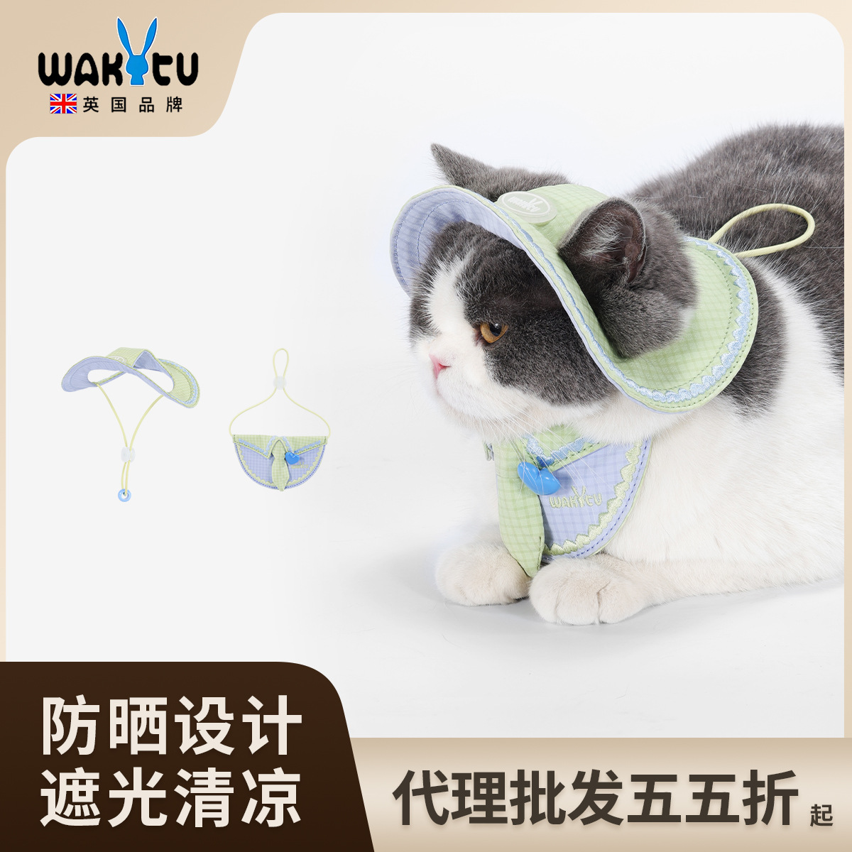 wakytu 英国ペット漁師帽子犬猫唾液タオル露出耳帽子夏の日焼け止め帽子