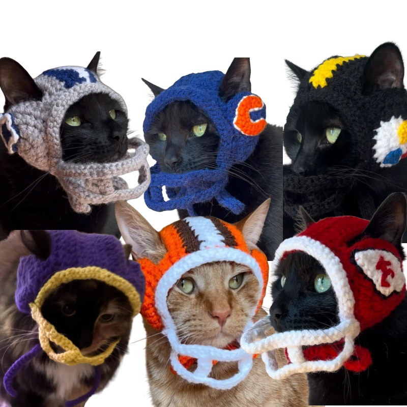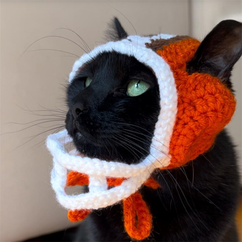Amazonクロスボーダーの新しい手作りのかぎ針編みペットラグビーハット、かわいい猫と犬のユニバーサル耳漏れ帽子